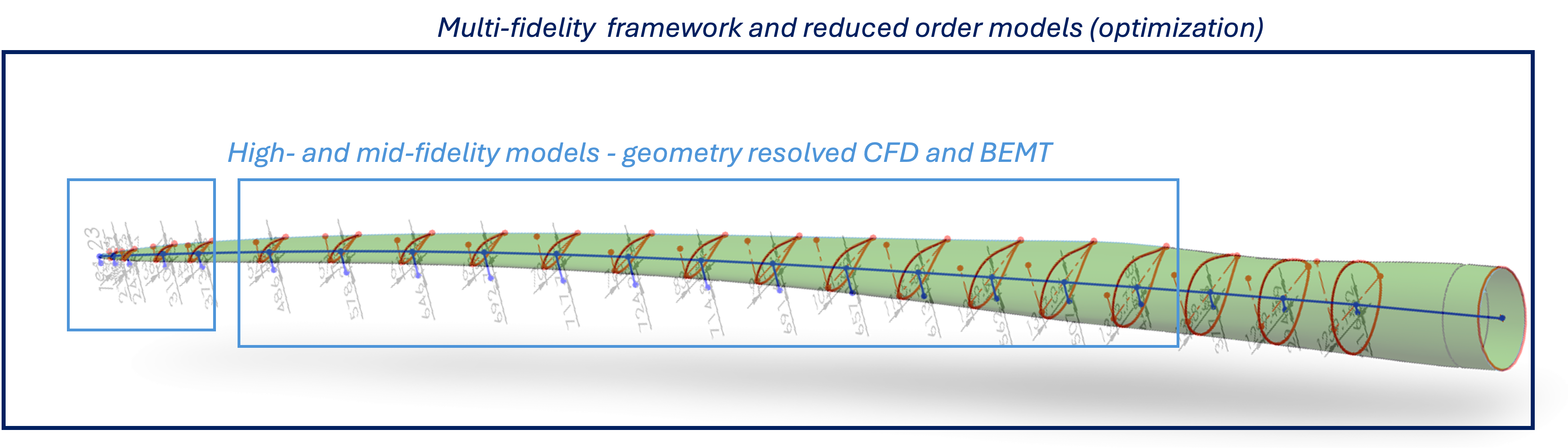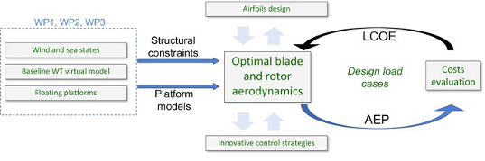 The project will optimize wind turbine blades and towers using multiple fidelity simulations. Airfoils will be refined to improve performance in Mediterranean conditions, and an optimization algorithm will tailor energy production, structural strength, and costs, including a focus on reducing the Levelized Cost of Electricity (LCOE) for floating platforms.